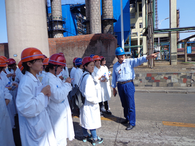 材料与化学工程系13应化专业学生工业见习圆满完成 工业见习是高校理工科专业重要的实践教学环节,是专业培养目标和课程设置的重要组成部分,是对理论教学的完善和补充。2015年5月12日,材料与化学工程系13应用化学专业107名同学在王瑞侠、刘天宝、陈大勇、陆志敏、李准准等指导教师的带领下,赴东至县香隅化工园区安徽华尔泰化工股份有限公司进行了工业见习。