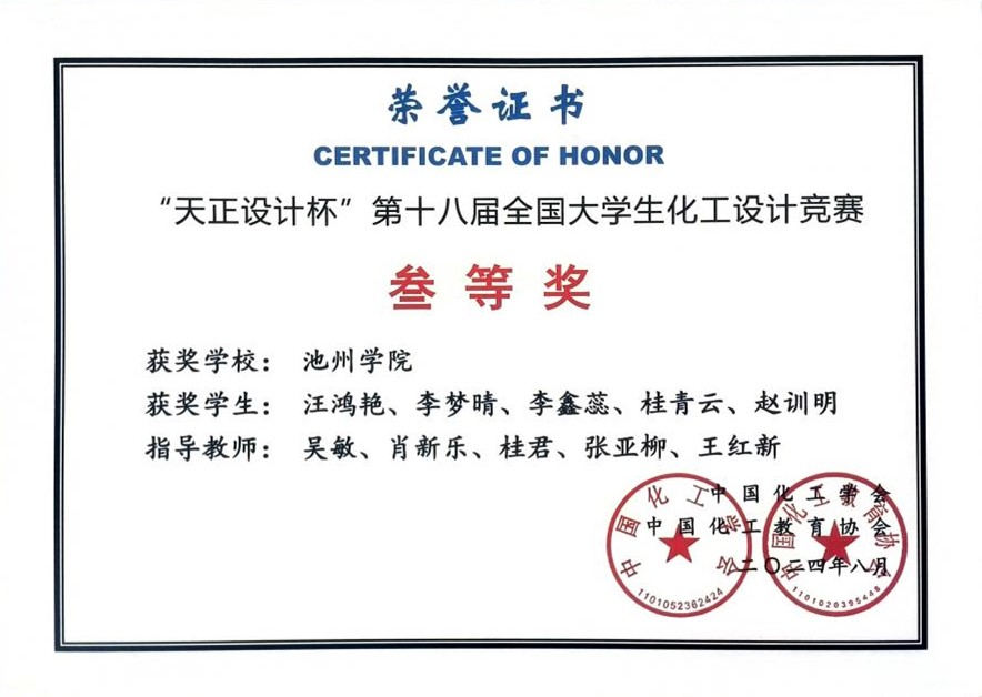 本届竞赛以我国1,3-丙二醇产能不足和技术落后的问题为背景,要求设计一座技术符合我国绿色低碳循环发展的1,3-丙二醇清洁生产厂区。金沙线路官网积极组织学生参赛,师生齐心协力,积极备赛,经过4个多月的努力,最终取得全国三等奖的优异成绩。本次竞赛有效培养了学生的创新思维、工程设计和团队协作能力,对于提升学生综合素质起到了积极推动作用,也彰显了金沙线路官网在化学工业实践教育方面的成效。