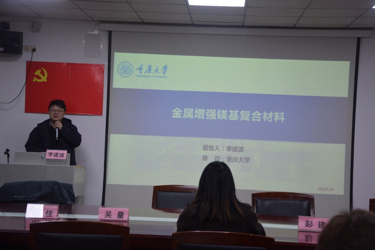 重庆大学李建波教授的学术报告题目为《金属增强镁基复合材料》,李建波教授介绍了课题组基于金属基复合材料、镁基复合材料、异质金属增强镁基复合材料等方向进行的研究工作以及相关的成果。