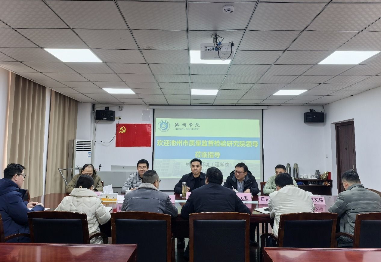 2月21日上午,池州市质量监督检测研究院院长吴慧斌一行莅临js3845金沙线路交流指导。此次交流会议由学院院长吴国志主持,副院长昌杰、教研室主任、实验实训中心负责人参会。