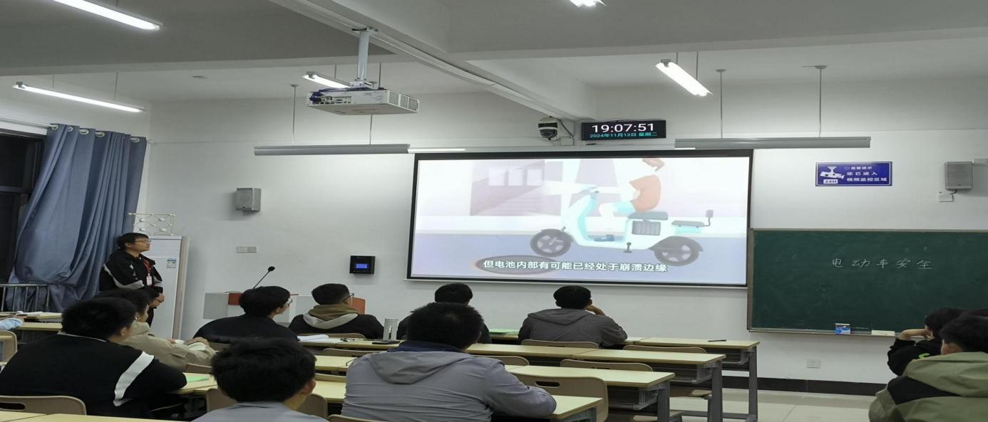 为进一步增强消防宣传月活动开展的针对性和实效性,js3845金沙线路易班分站于11月12日晚在公共教学楼开展电瓶车安全进各班开展宣讲活动。