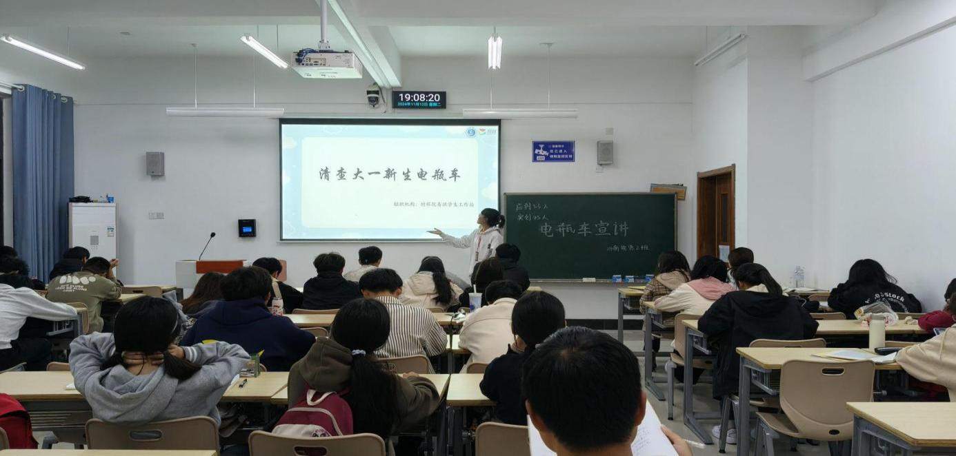 活动期间,易班分站工作人员佩戴工作证,在各班级传达学校清理排查电瓶车相关工作的通知,之后利用电瓶车安全警示教育宣传视频与PPT相结合,运用真实案例阐释电瓶车的安全隐患和起火原因。