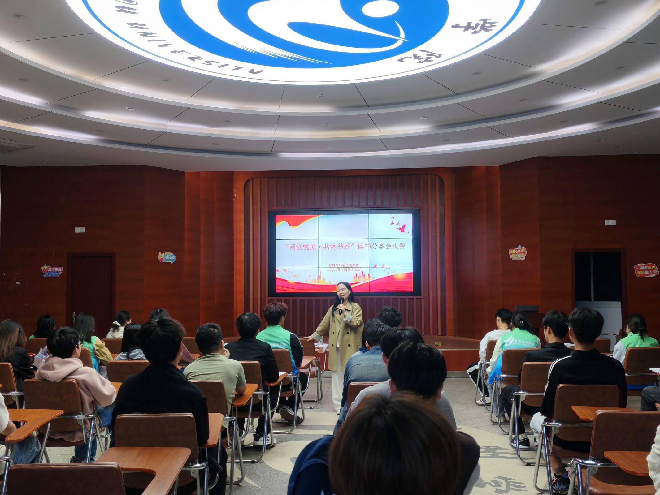 华灯初上,大学生活动中心内书香弥漫。八位分享者依次登台,结合精心制作的PPT,分享了《平凡的世界》《活着》等经典书籍的阅读感悟。他们以生动的语言和独到的见解,展现了书籍的思想深度与艺术魅力,引发了现场观众的共鸣。