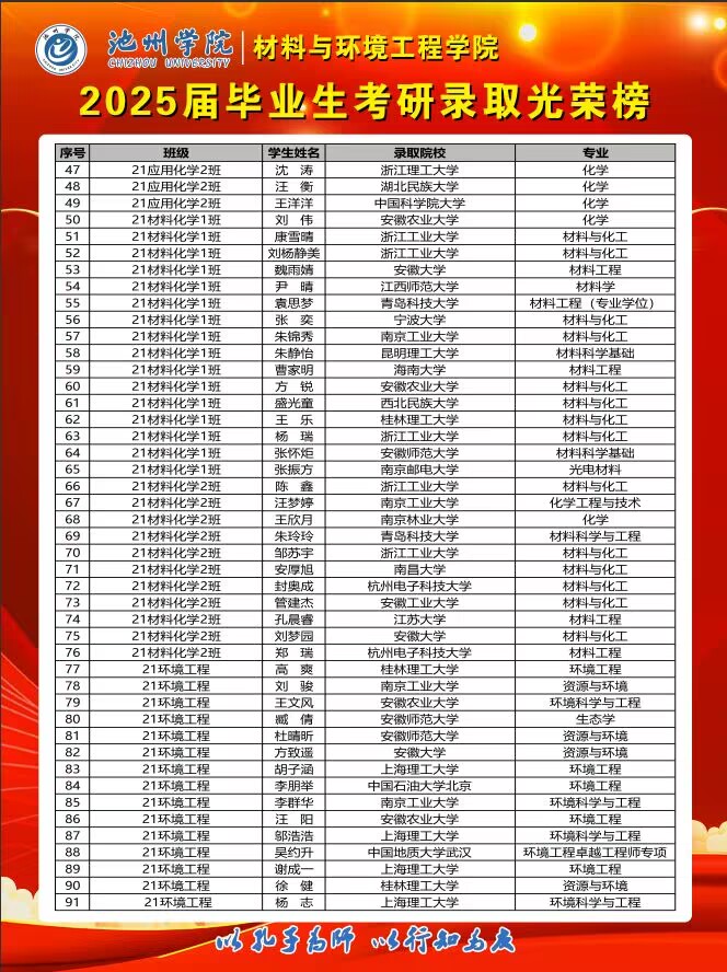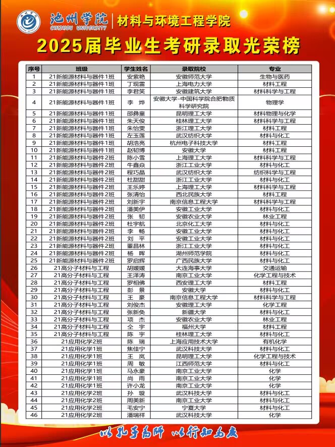 随着研究生入学考试结果的公布,js3845金沙线路喜报频传,346名应届本科毕业生中,确定录取人数达91人,考研录取率26.3%,再创学院毕业生考研录取率新高!一份亮眼的考研录取光荣榜,见证了莘莘学子的辛勤付出与学院卓越的人才培养成效。