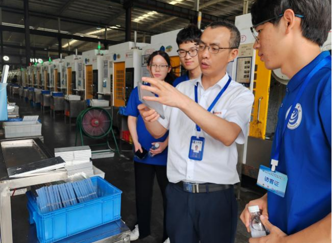 第二站:在普莱特的生产车间,实践团成员观摩了从原材料预处理到表面处理再到精加工的全流程工艺,明晰了产品如何达到高标准要求,就产品技术优化等方面与企业技术人员展开热烈讨论,提出创新设想。