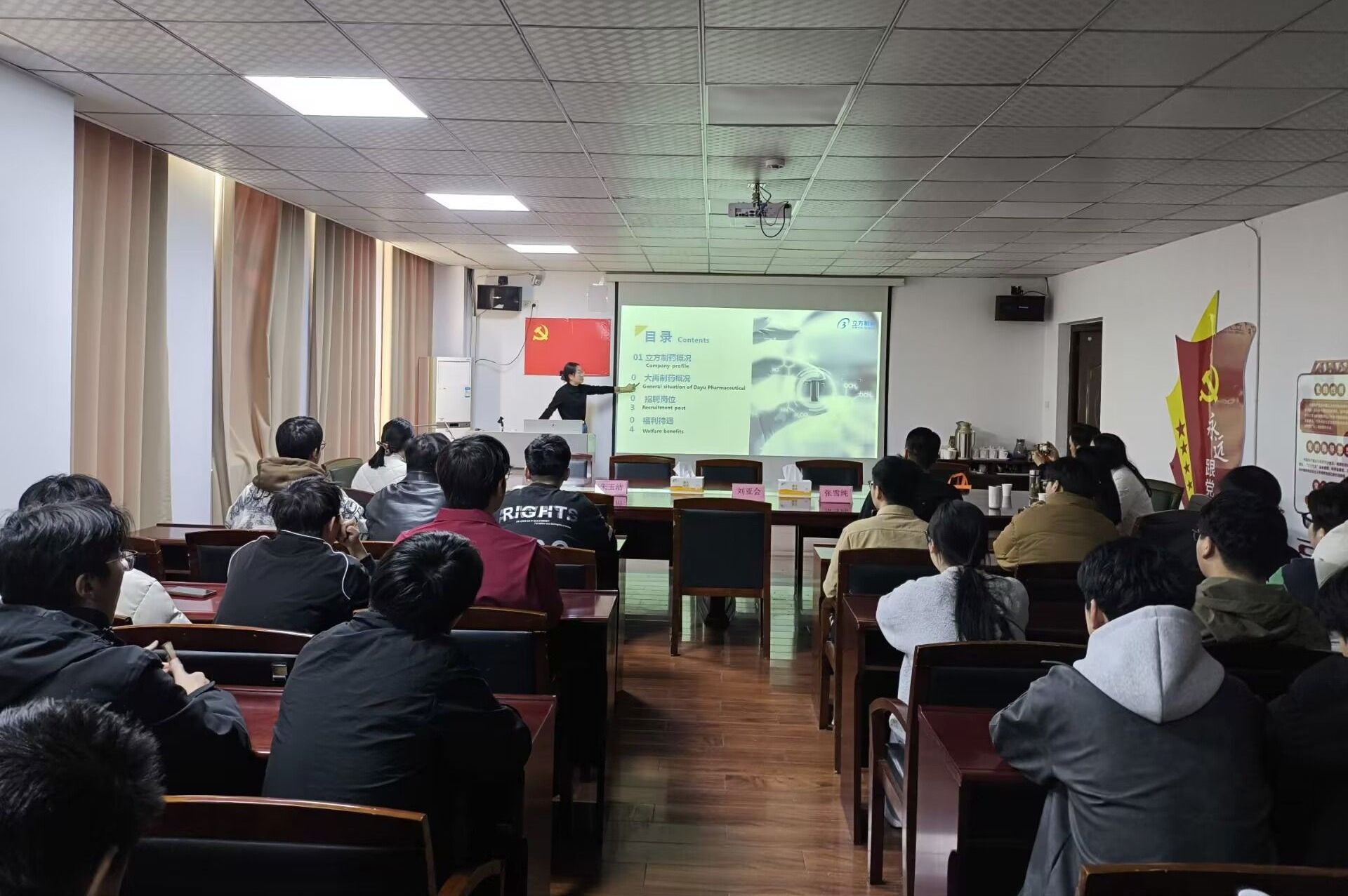 为助力毕业生精准就业,加强校企合作交流,3月21日,合肥大禹制药有限公司到学院进行就业宣讲招聘。院党委副书记刘昉、毕业班辅导员及2025届材料化学、应用化学等各专业100余名毕业班学生参加招聘会。