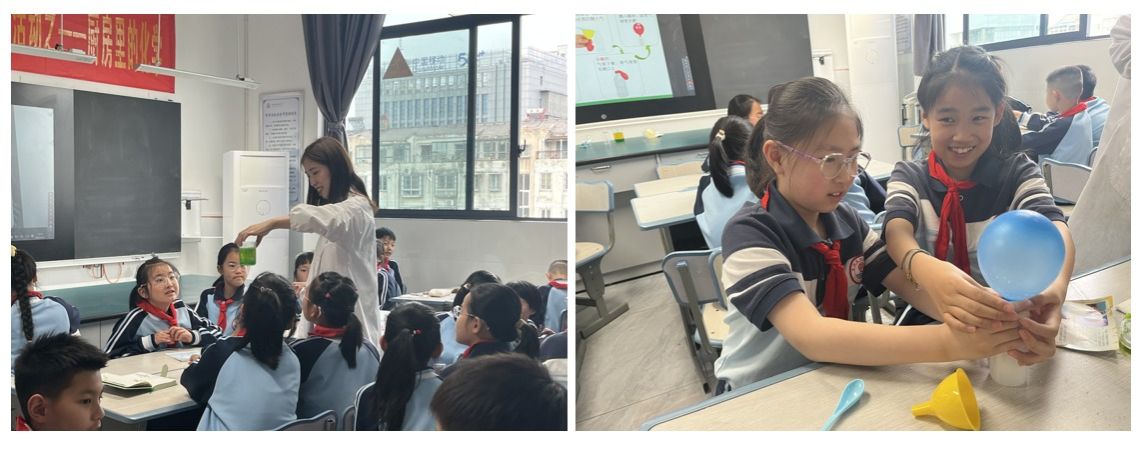 首先,施慧老师通过介绍食用油、洗涤剂等厨房中的常见物品,以及食物发酵、氧化等生活现象,引导小朋友们思考其中的化学知识。随后,在实验探究环节,小朋友们通过“瓶子吹气球”、“自制灭火器”等小实验真切感受到神奇的化学变化。