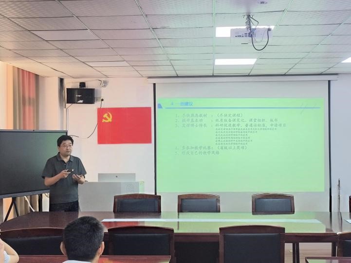 2025年5月7日下午,js3845金沙线路在会议室举办一场教学经验分享会。本次分享会由安徽省“教学名师”朱子春老师主讲,院长吴国志主持,学院近三年新进教师参加。