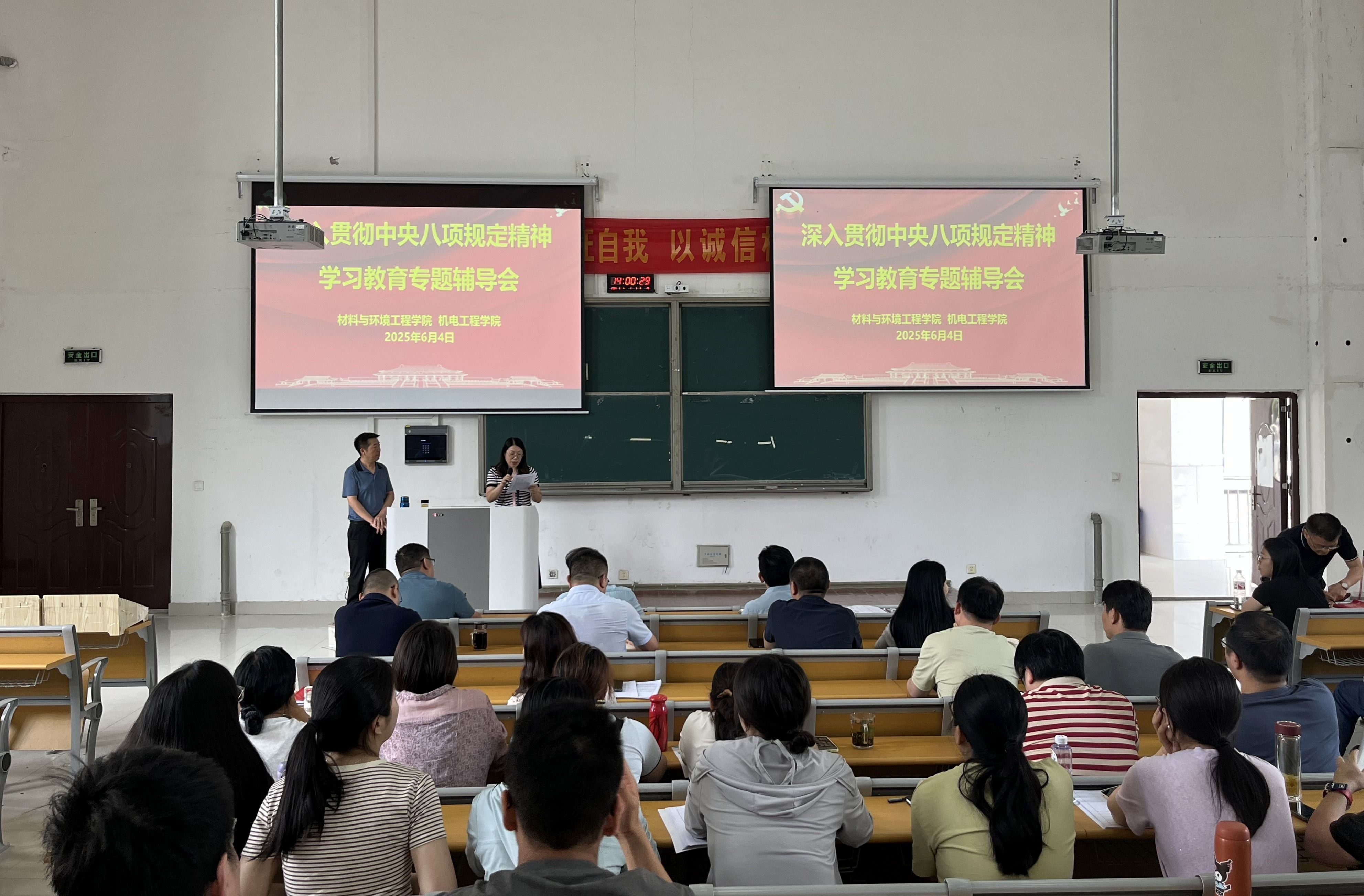 6月4日,js3845金沙线路和机电工程学院联合举办深入贯彻中央八项规定精神学习教育专题辅导会,邀请校纪委副书记、纪委办公室主任何贵林同志作专题辅导报告。学院全体教师党员、干部和学生党员代表参加,会议由学院党委书记程海峰主持。