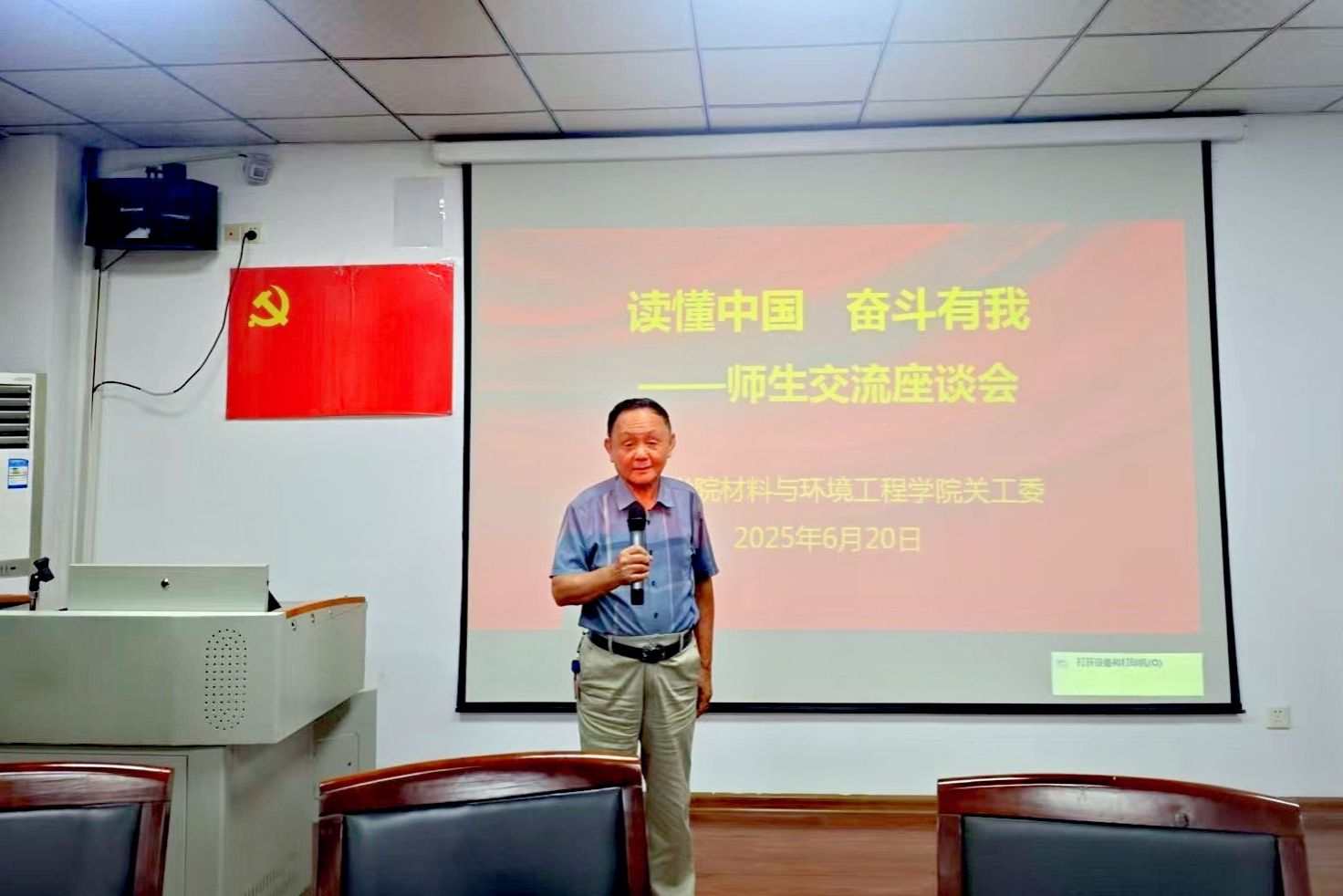 6月20日下午,js3845金沙线路在逸夫楼南楼317会议室举行“读懂中国,奋斗有我”师生交流座谈会,js3845金沙线路关工委常务副主任何国生、材环学院关工委副主任吴新民莅临出席,学院全体班子成员、党务行政办公室和工会负责人,以及六十余名学生代表参加了活动。