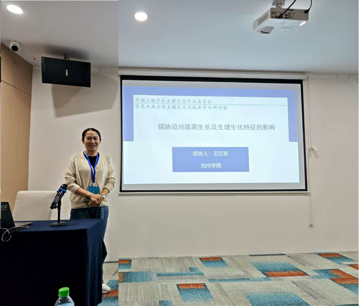 会议期间,王红新副教授受邀在“全球变化土壤生态学+新型污染物与生态修复”分会场做题为“镉胁迫对蔬菜生长及生理生化特征影响”的学术报告,并应邀主持研究生分会场报告,与其他高校的研究生进行了深入交流。