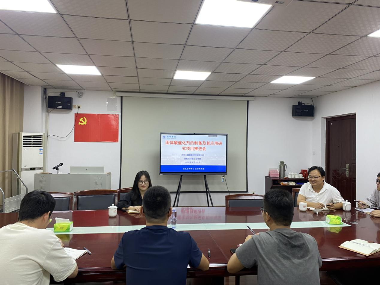 会上,钱春结合目前项目进展及技术路线优化进行了简单介绍,希望通过此次交流可以促进项目实施过程推进,为企业发展贡献力量。池州天赐高新材料有限公司研发经理郭冬冬和总经办主任张学芳就固体酸催化剂的开发在后期公司业务中的重要性,期望学院可以尽快完成技术路线探索,并表示希望能依托产学研合作项目为契机,深化校企合作,未来在协同育人、实验平台共建及科研项目等方面合作共赢。