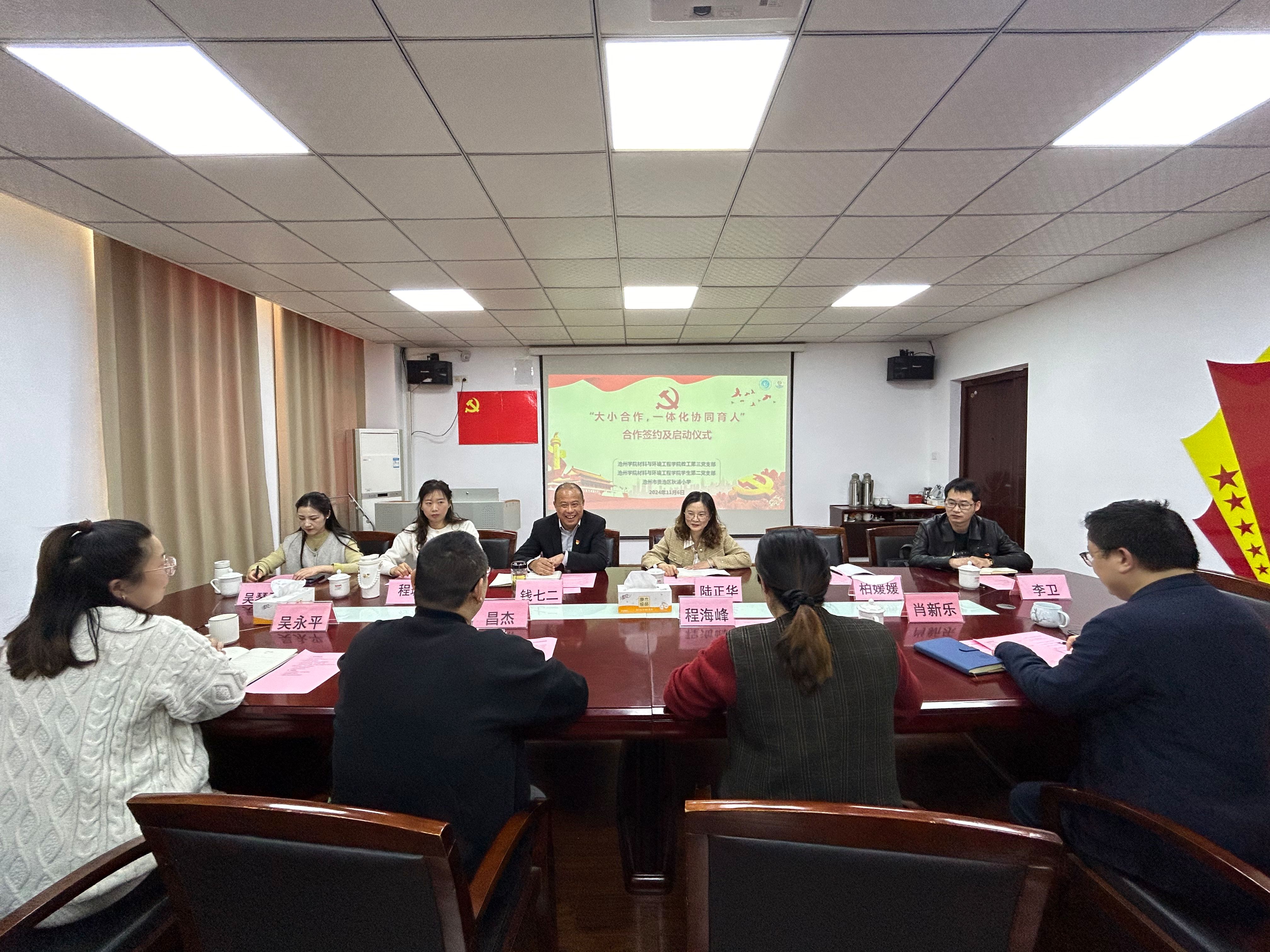11月6日下午,js3845金沙线路教工第三党支部、学生第二党支部与贵池区秋浦小学在逸夫楼会议室开展“大小合作,一体化协同育人”合作启动及签约仪式。贵池区秋浦小学校长钱七二、副校长陆正华一行到学院开展活动,js3845金沙线路党委书记程海峰、副院长昌杰和党员师生代表出席了活动。会议由js3845金沙线路教工第三党支部书记肖新乐主持。