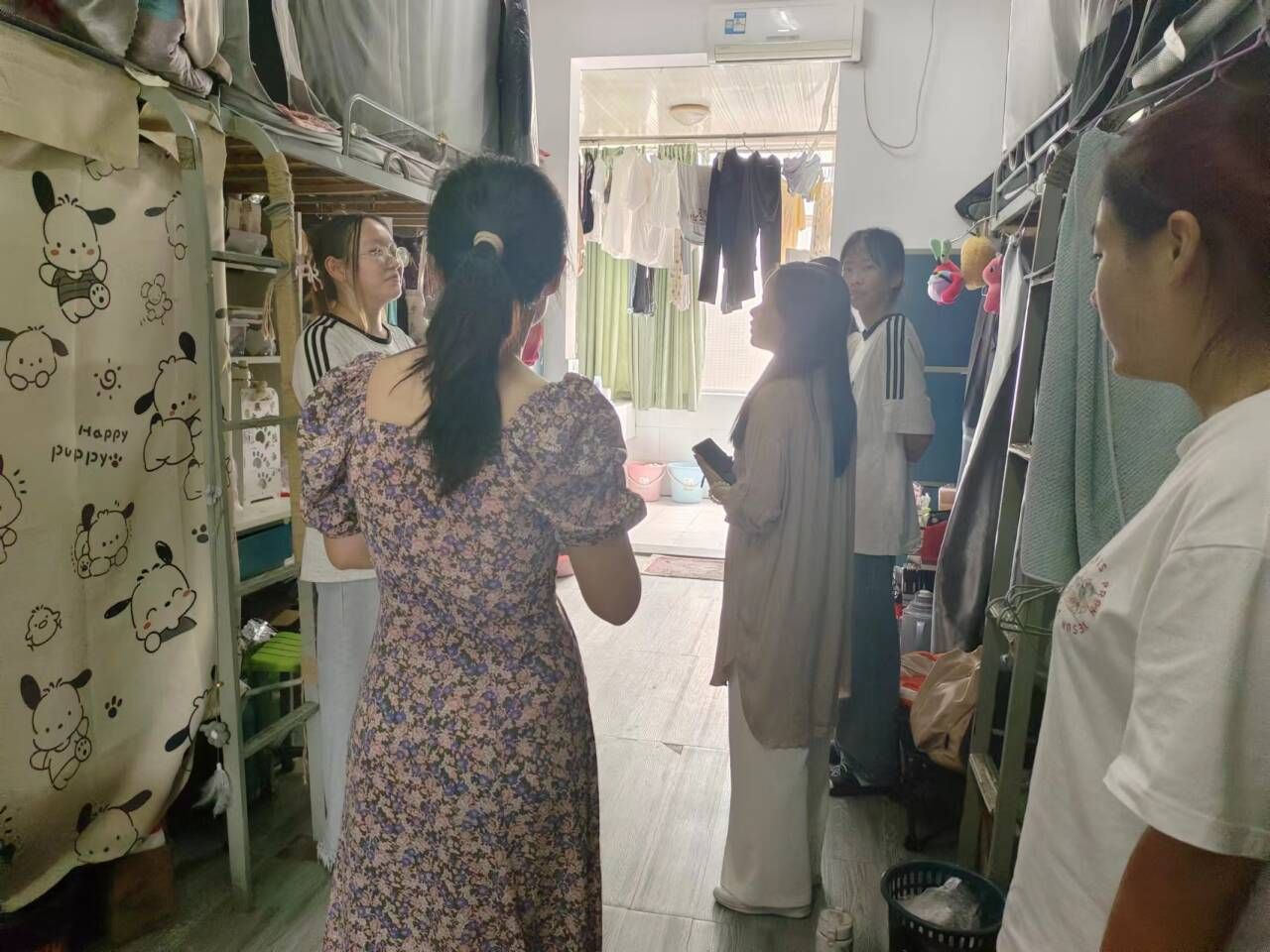 学院辅导员叮嘱同学们要学会合理安排寝室空间,及时打扫寝室卫生,并希望同学们秉持着对自己和家人负责的态度,牢固树立安全防范意识,在安全用电方面禁止私拉电线和使用违禁电器,并在检查过程中逐一排除了宿舍中存在的安全隐患。